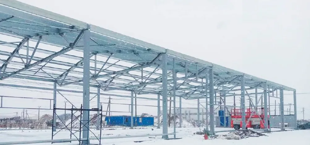 Усиленный стальной каркас рассчитан на высокие статические и динамические нагрузки, включая размещение тяжёлого складского оборудования и стеллажных систем. Срок службы превышает 50 лет. Конструкция выдерживает экстремальные климатические условия в Васильевском Мхе, включая снеговые и ветровые нагрузки.
